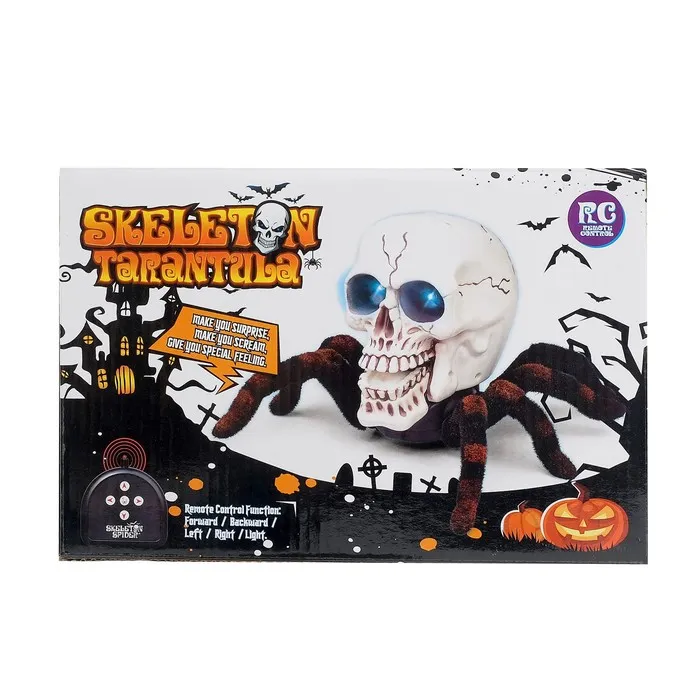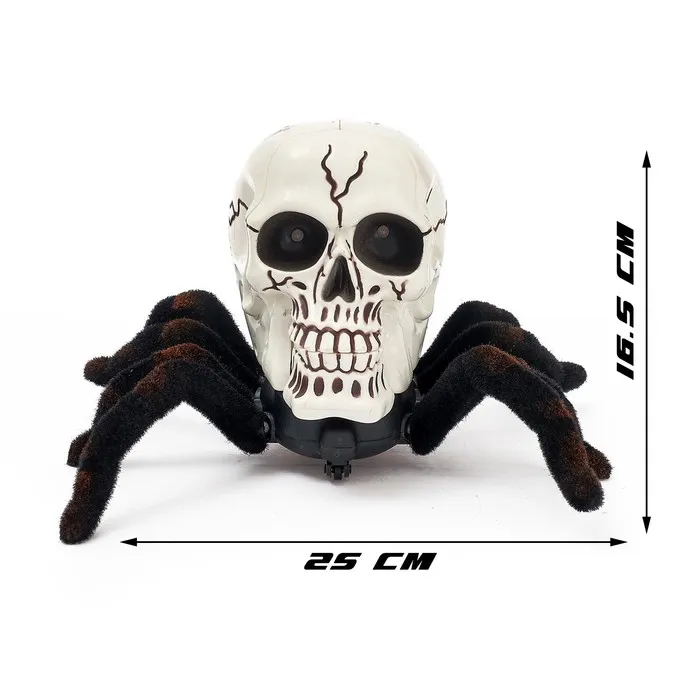 - Реалистичный дизайн: паук выполнен в виде большого насекомого с детализированными лапками и черепом. Размеры игрушки (16,5 см в высоту и 25 см в длину) делают её удобной для игры, но при этом достаточно внушительной для создания эффекта присутствия.