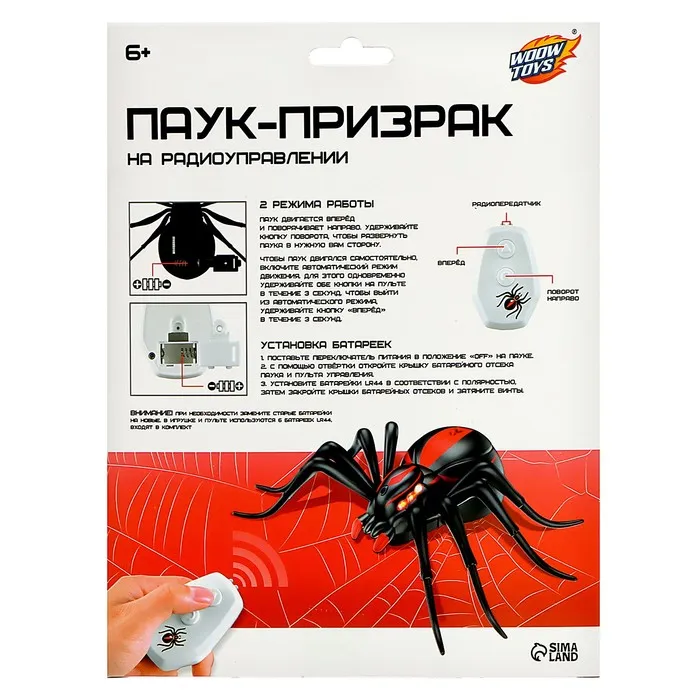 Паук радиоуправляемый «Черная вдова», работает от батареек — Характеристики