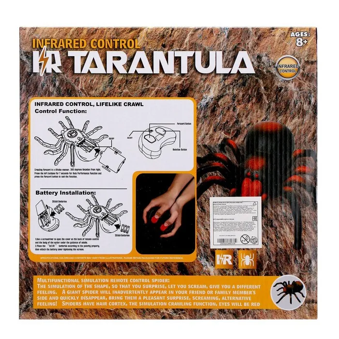 Управляй пауком и пугай друзей! Радиоуправляемый тарантул на батарейках – это реалистичная игрушка, которая оживает в ваших руках. Устрой захватывающие приключения прямо у себя дома или на улице.