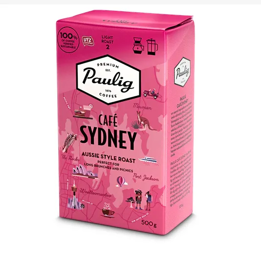 Paulig Café Sydney - это слегка обжаренный и приятно кислый кофе. Смесь кофе имеет тонкий фруктовый и медово-сладкий вкус. Paulig Café Sydney - это городской кофе, вдохновленный непринужденным австралийским стилем жизни, который включает утренние завтраки, пикник на открытом воздухе, туры с барбекю и изысканные ужины. Paulig Café Sydney - это смесь кофейных зерен арабики из Африки и Латинской Америки. Уровень обжарки 2.