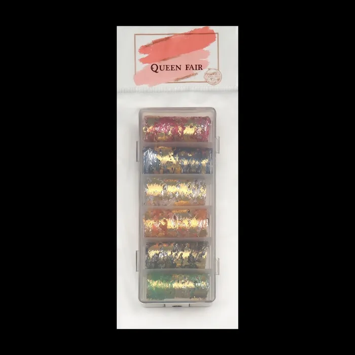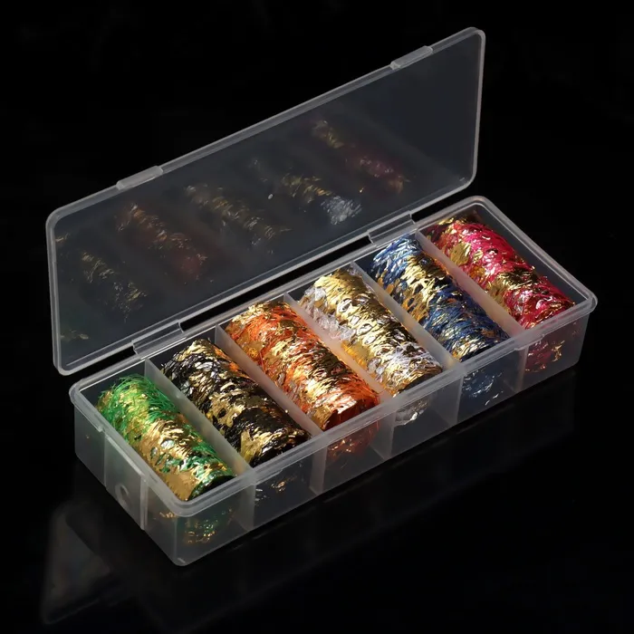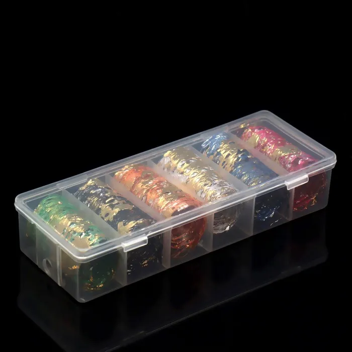 Паутинка с фольгой для ногтей, переводная, 6 шт, в пластиковом органайзере, разноцветная