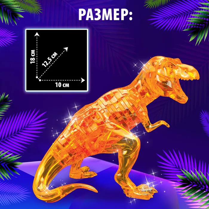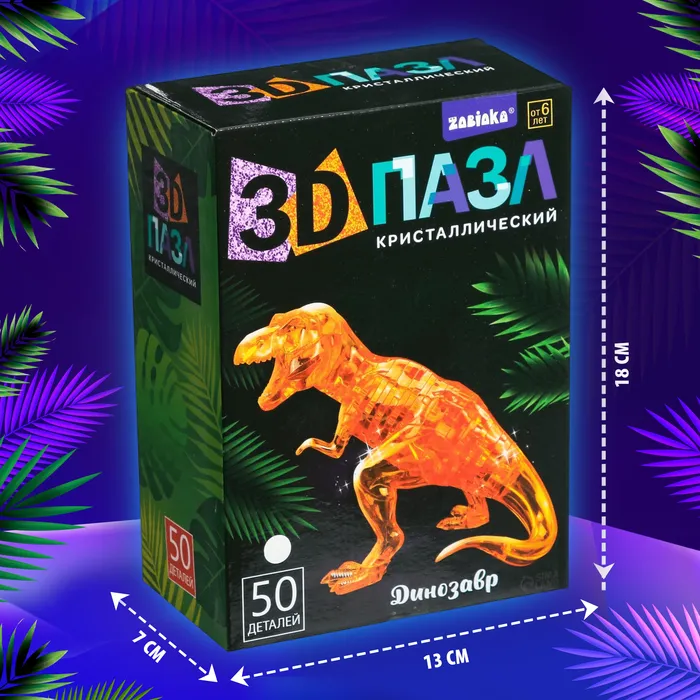 Пазл 3D детский «Динозавр», кристаллический, 50 деталей, цвета МИКС — Характеристики