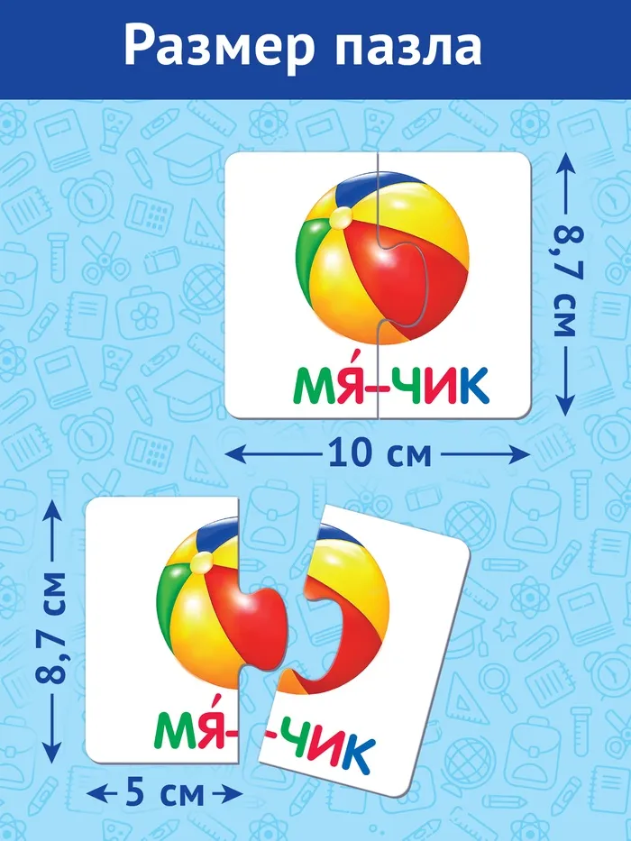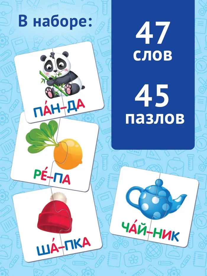 Пазл - букварь «Читаем по слогам», 47 слов, 45 пазлов, 90 деталей — Характеристики