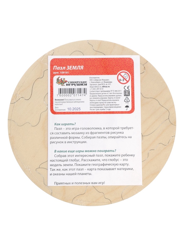 Пазл деревянный 18 эл. «Земля» — Характеристики