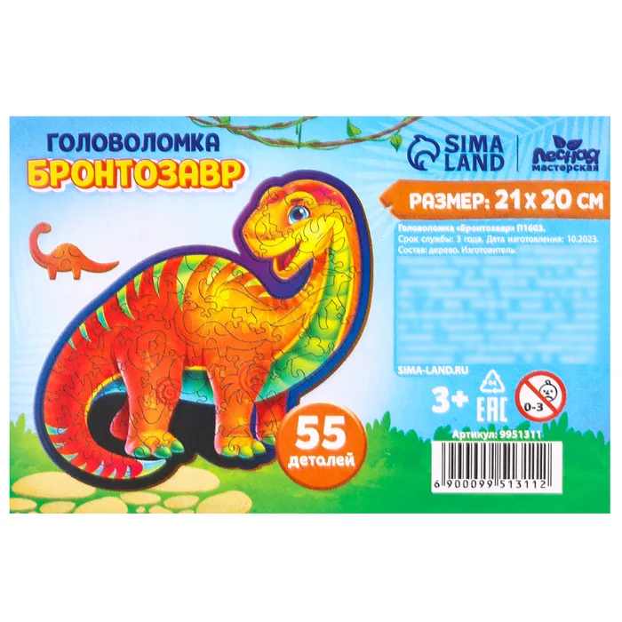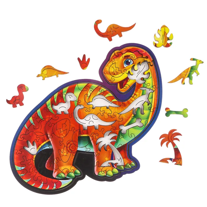 Пазл деревянный фигурный «Бронтозавр», 55 элементов — Характеристики