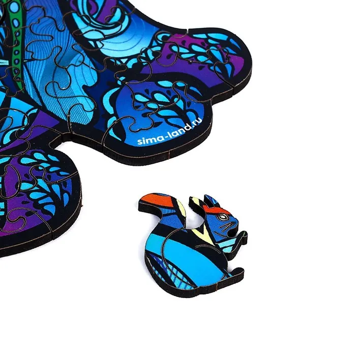- Каждая деталь в наборе — это отдельная фигурка. Все они изготовлены из дерева, тщательно обработаны и не имеют заусенцев. Поэтому собирать такой пазл приятно и удобно.