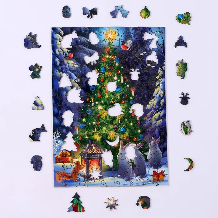 Пазл деревянный фигурный на новый год «Ночная сказка», 145 элементов не останутся без вашего внимания!