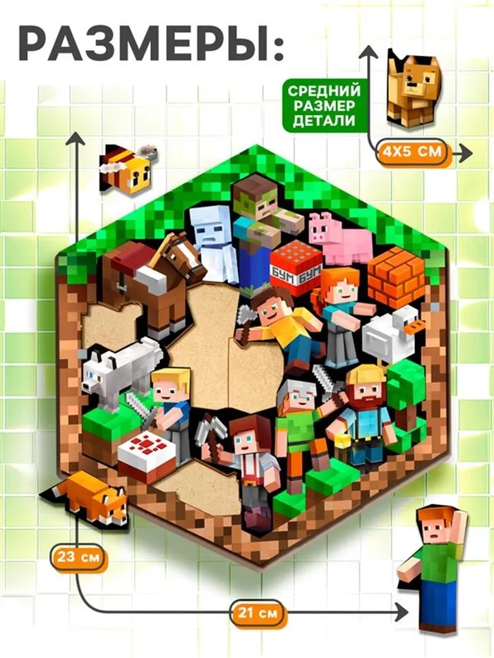Деревянный пазл «Пиксельный мир» — это увлекательная игра для детей от 3 лет, которая сочетает развлечение и обучение. Составляя фигурные детали в рамке, ребёнок развивает внимательность, логику и мелкую моторику, создавая яркую картинку.