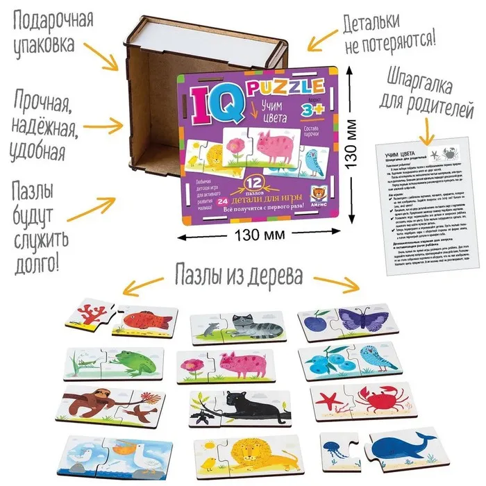 Пазл деревянный IQ «Учим цвета» — Характеристики
