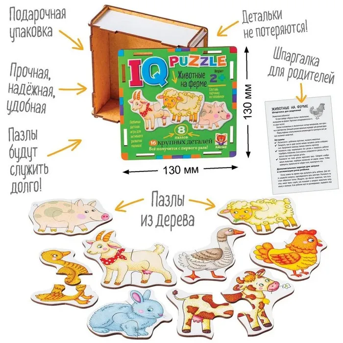 Пазл деревянный IQ «Животные на ферме» — Характеристики