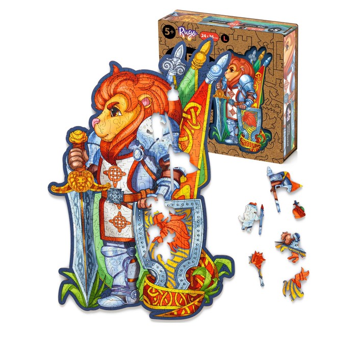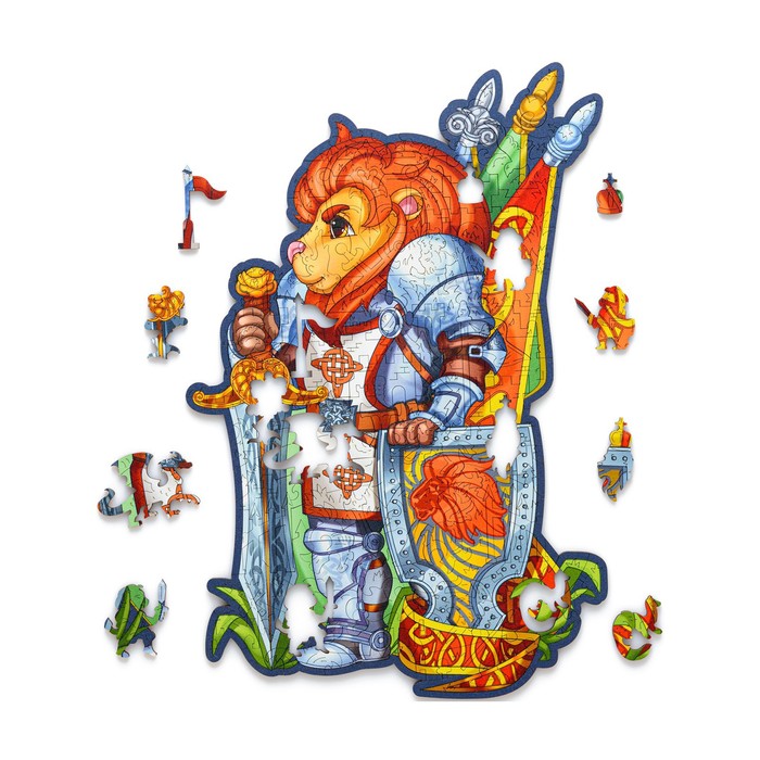 Пазл деревянный «Лев-рыцарь», размер L — 25×35 см, 110 деталей — Характеристики