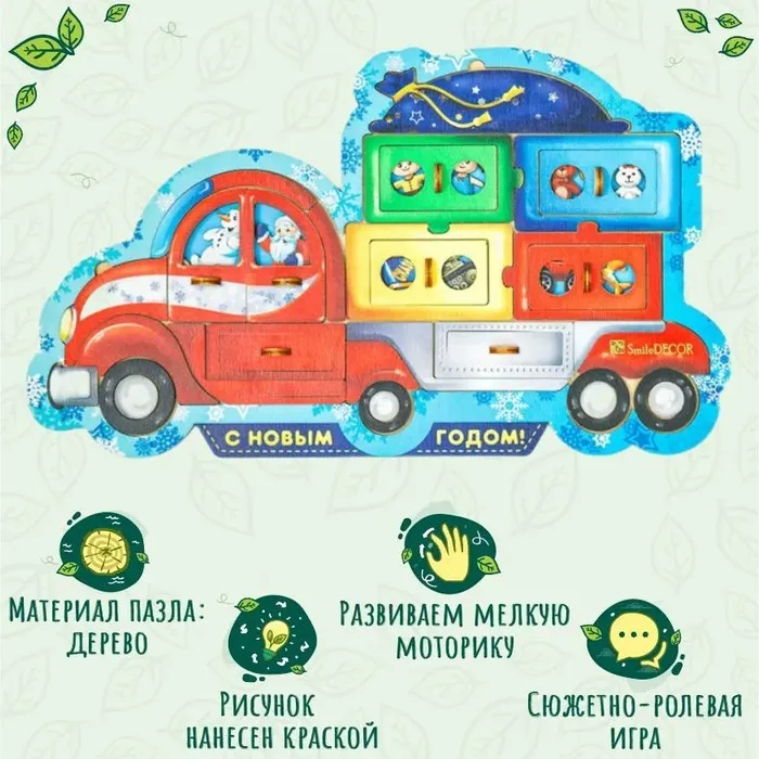 Пазл деревянный «Новогодний грузовик», 54 детали — Характеристики