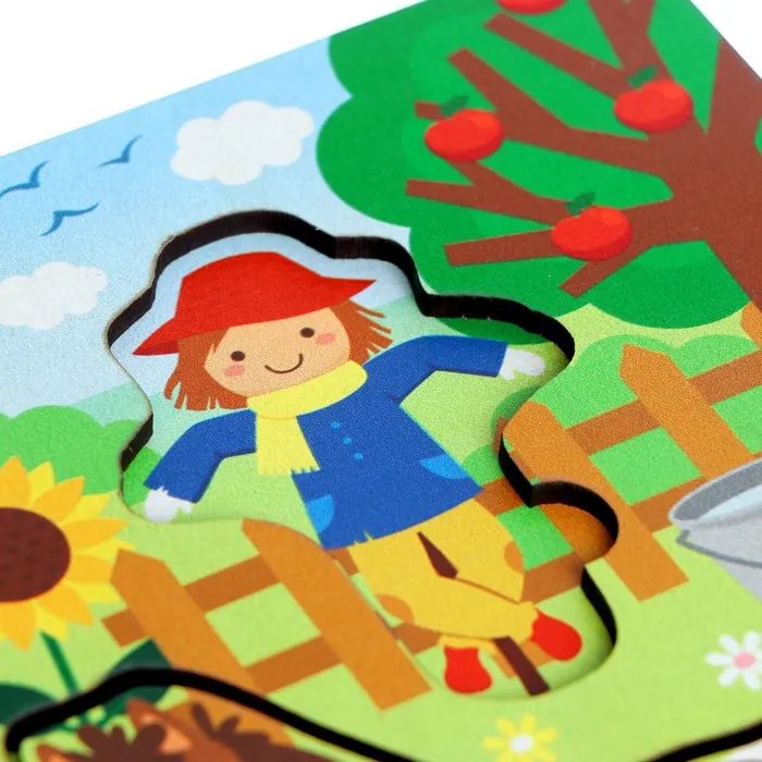 - Пазл двухслойный, состоит из 6 деревянных деталей и поля для сборки со встроенным музыкальным чипом. Все детали пазла вынимаются.