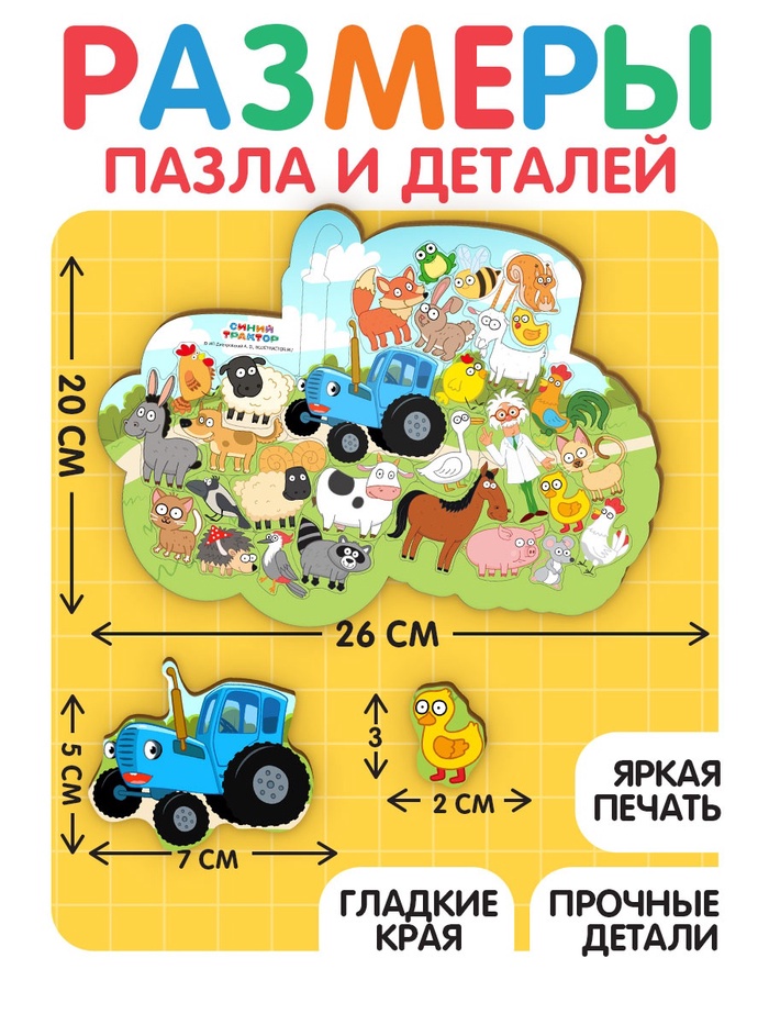 Пазл деревянный «Синий трактор», 30 деталей — Характеристики