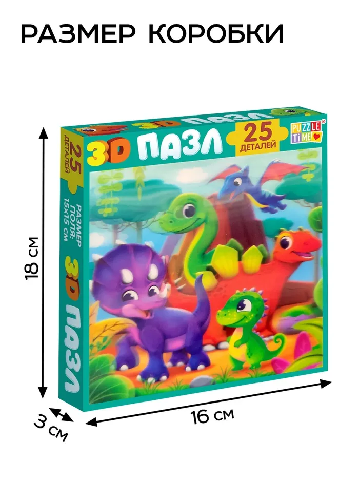 Пазл детский 3D «Весёлые динозаврики», 25 деталей — Характеристики