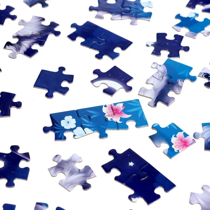 Собрав все детали в одно целое, вы получите красочную картинку размером 17.5 × 13 см, а после этого можете снова убрать пазлы в компактную коробочку.