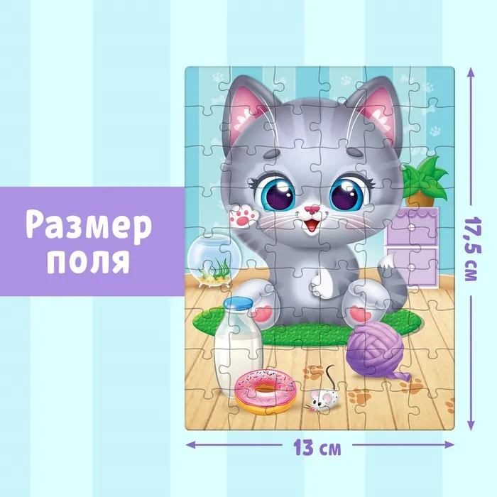 Пазл детский «Радостный котик», 54 элемента — Характеристики