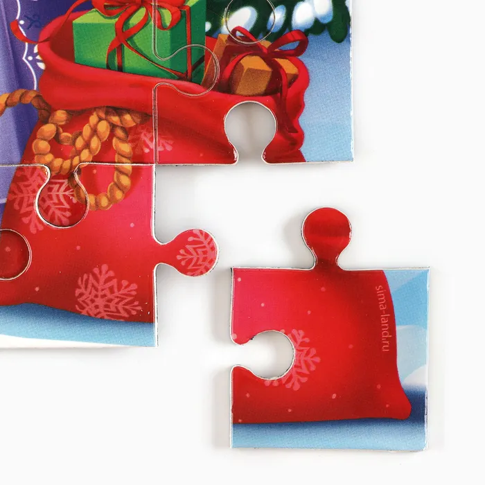 Собирая пазл, ребёнок учится сосредотачиваться, улучшает координацию движений и развивает пространственное воображение. Тематика Нового года добавляет праздничного настроения и увлекает малыша в сказочный мир зимнего чуда.