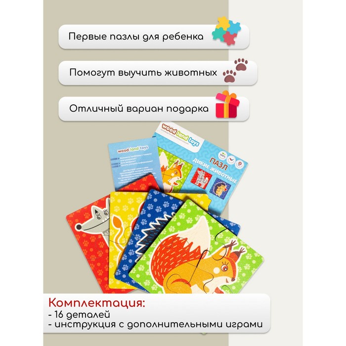 Пазл для малышей от WoodLand Toys — это отличная развивающая игрушка для детей от 3 лет. Пазл состоит из 16 деревянных элементов, что способствует развитию логического мышления и мелкой моторики. Изготовленный из безопасного и экологически чистого дерева, пазл окрашен нетоксичными красками, что гарантирует безопасность для ребёнка.