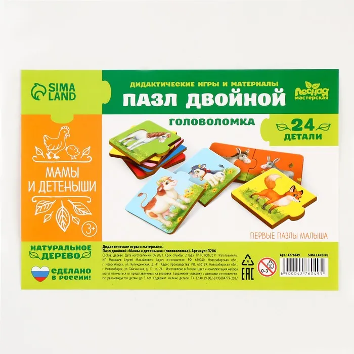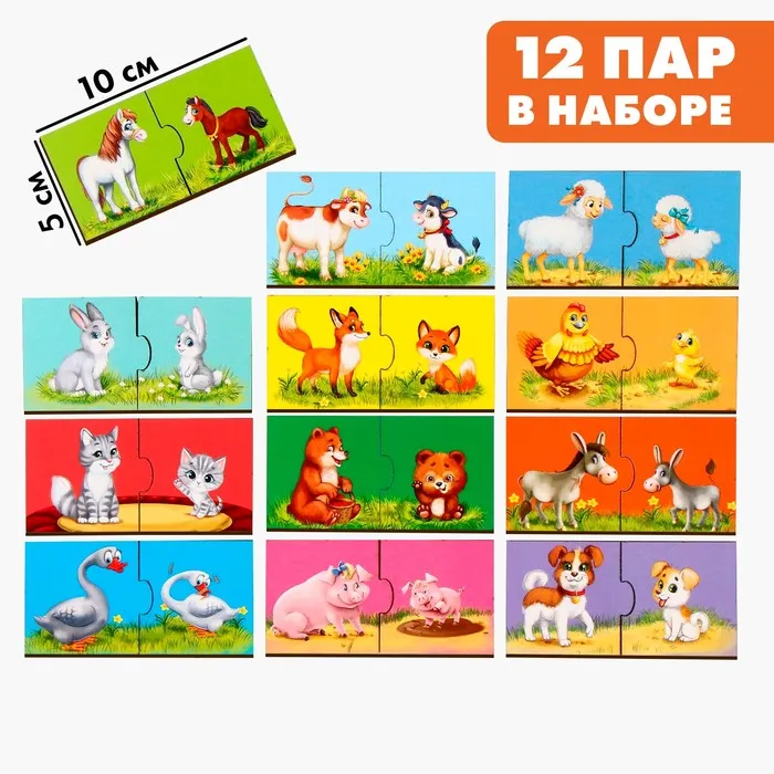 Пазл двойной «Малыши и мамы», головоломка, 12 пазлов, 24 детали — Характеристики