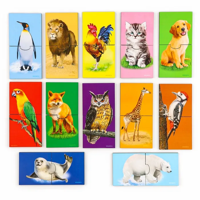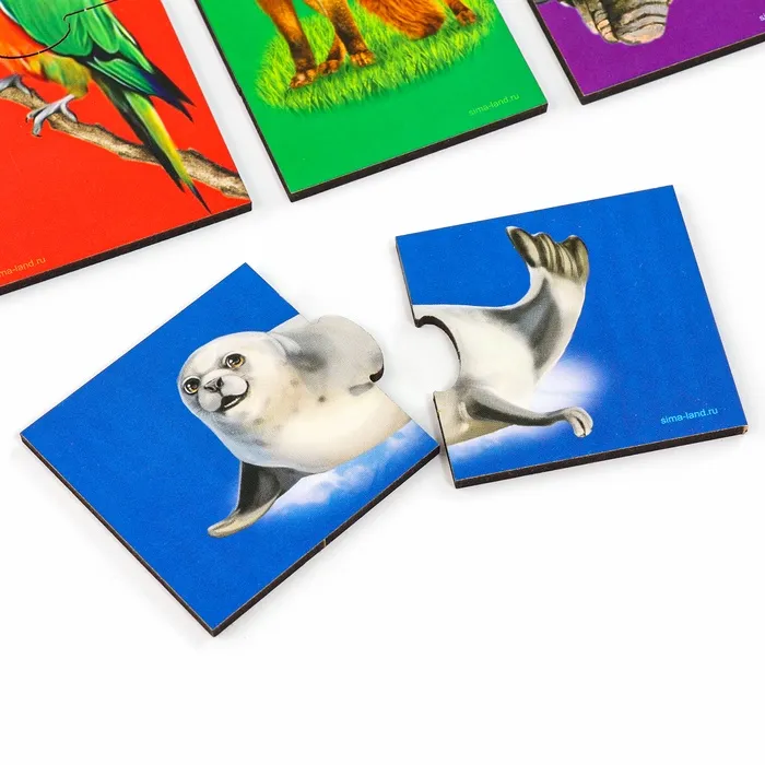 Складывая картинки из деталей, ребёнок изучает животных, развивает воображение, эмоциональное восприятие, мелкую моторику и осваивает навыки конструирования.