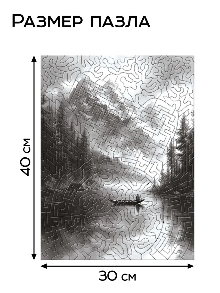 - Размер собранного пазла: 30 см в длину и 40 см в ширину.