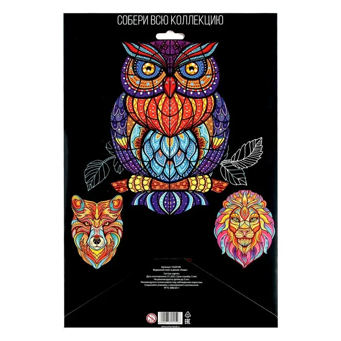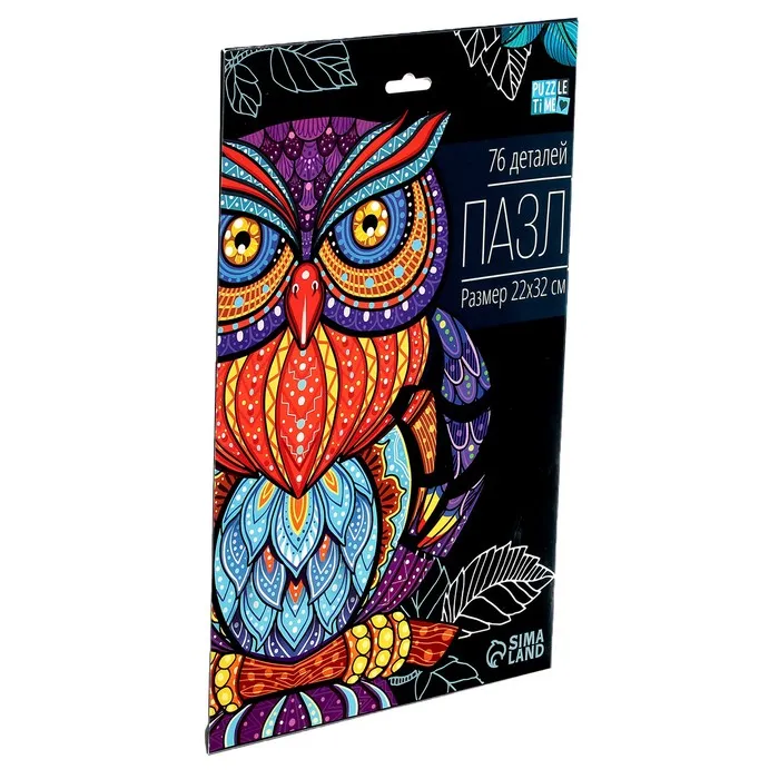 Пазл фигурный в рамке «Сова», на подложке, 76 деталей — Характеристики
