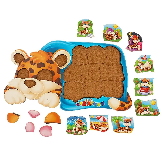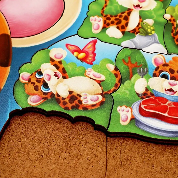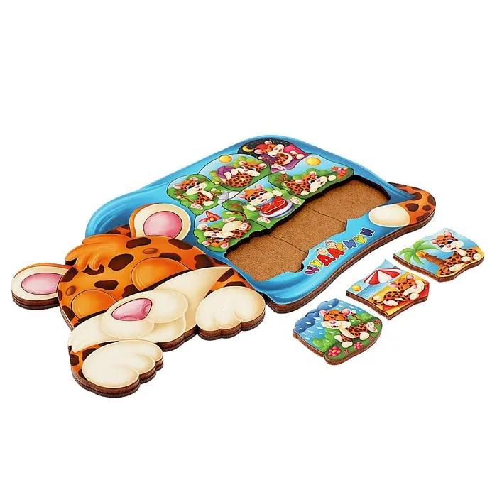 Пазл головоломка, развивающий «Леопард под одеялом» изготовлен из фанеры и бумаги.