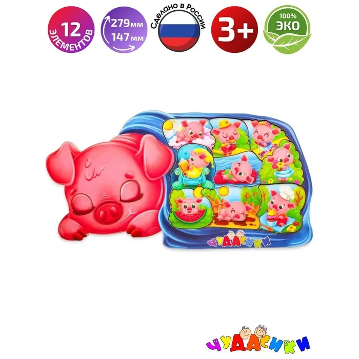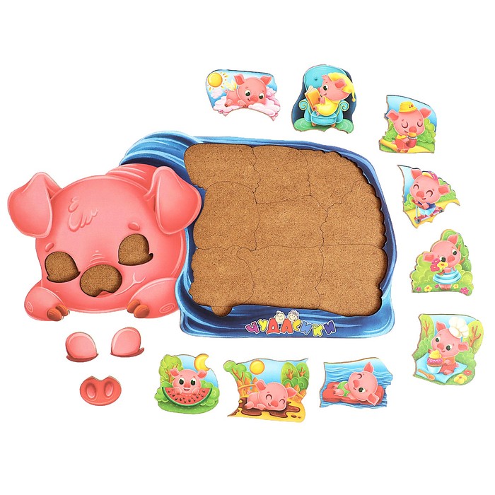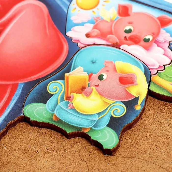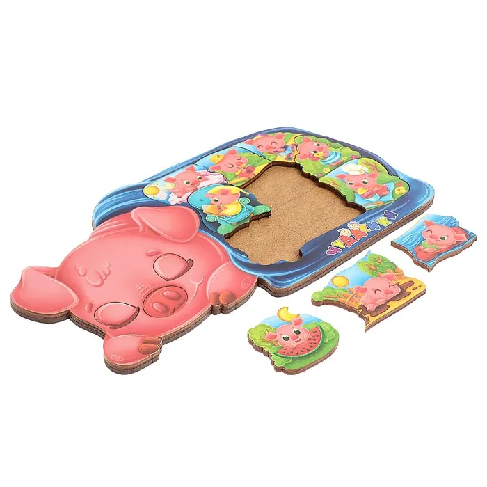 Пазл головоломка, развивающий «Поросёнок под одеялом» изготовлен из фанеры и бумаги.