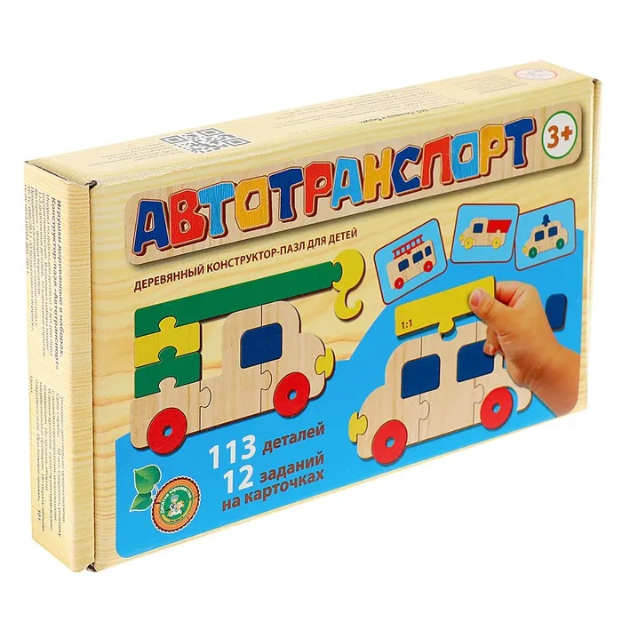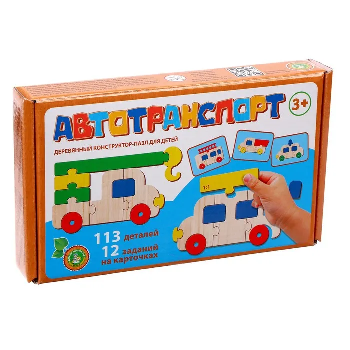 Пазл конструктор деревянный «Автотранспорт», 113 деталей — Характеристики