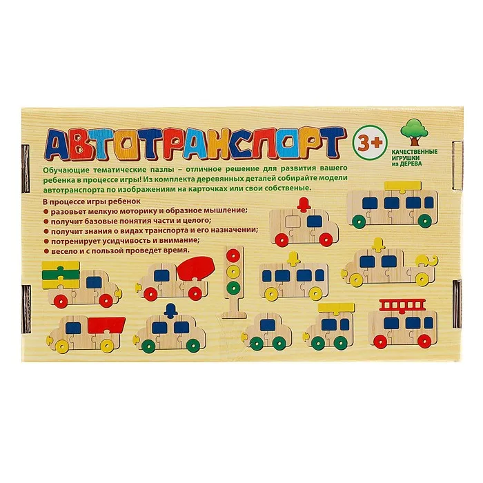 Деревянный пазл-конструктор «Автотранспорт» — это не просто игрушка, а настоящий помощник в развитии вашего ребёнка. Собирая пазл, выполняя задания с карточек или придумывая собственные вариации, малыш будет тренировать важные навыки. мелкую моторику, логическое мышление, пространственное восприятие и творческие способности.