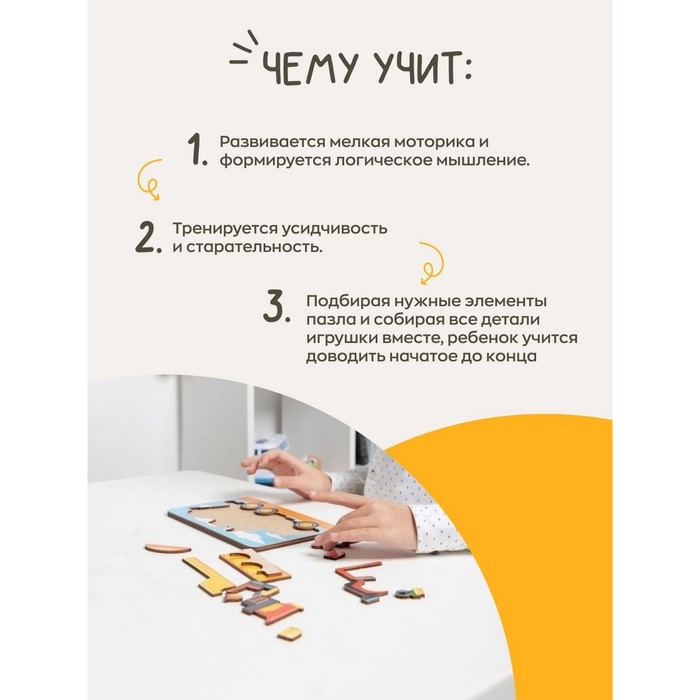 Подарите своему ребёнку незабываемые часы веселья и пользы с пазлом-конструктором! Эта развивающая игрушка не только увлечёт вашего малыша, но и поможет ему развить важные навыки.