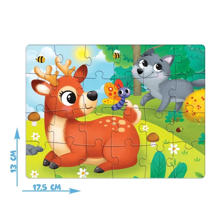 Собрав все детали в одно целое, вы получите красочную картинку размером 17.5 × 13 см, а после этого можете снова убрать пазлы в компактную коробочку.