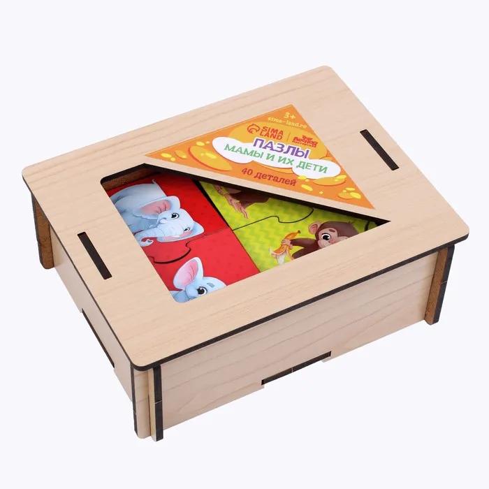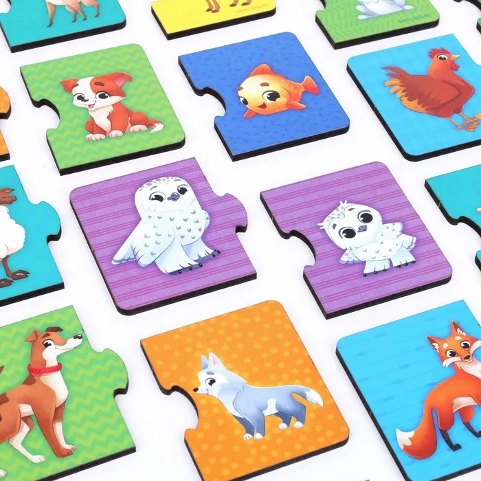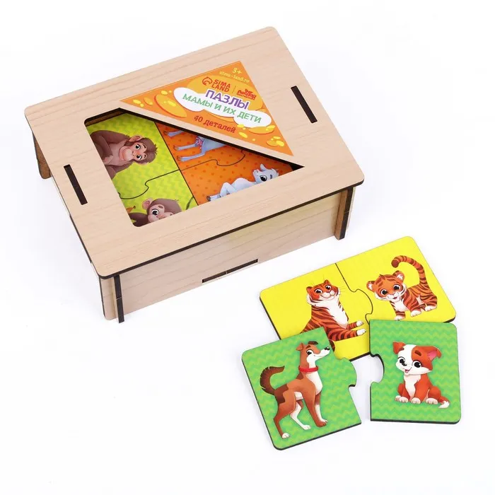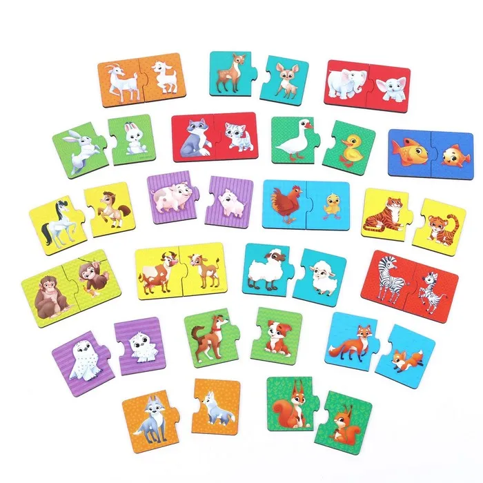 С помощью пазла кроха без труда выучит названия животных и их детёнышей.