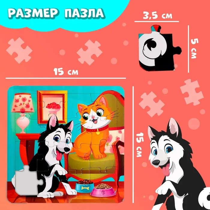 Пазл на подложке «Лучшие друзья», 16 деталей — Характеристики