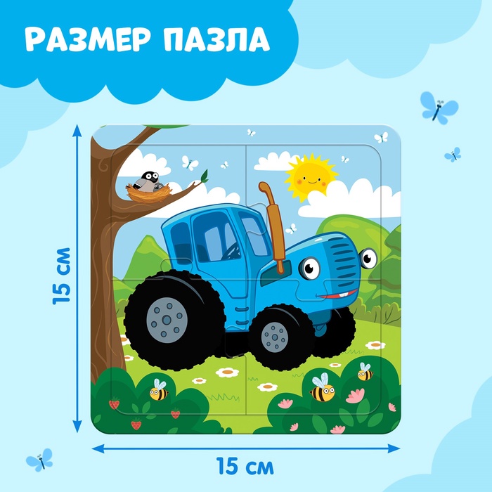 Пазл на подложке «Весёлый синий трактор», 4 детали — Характеристики