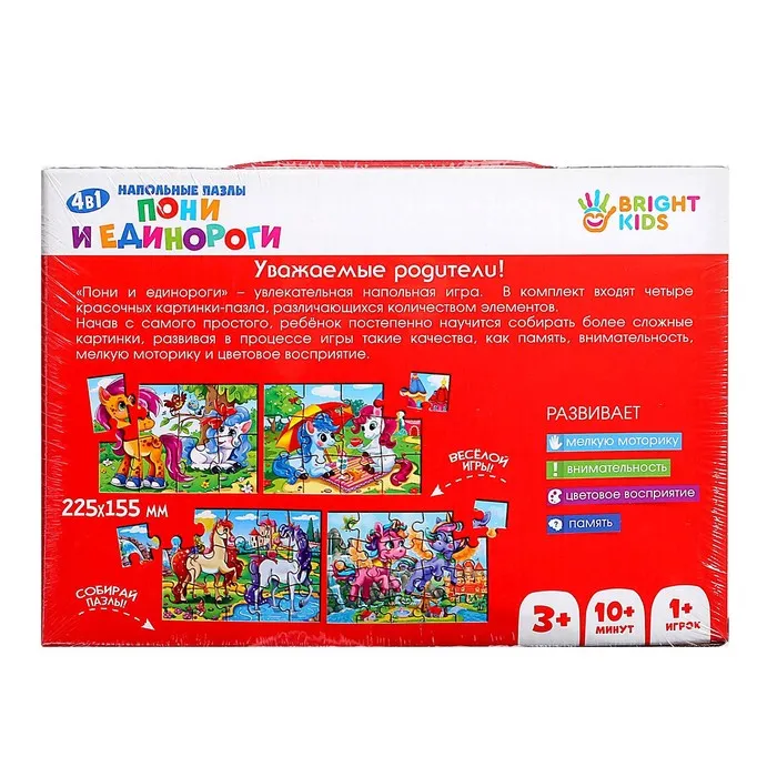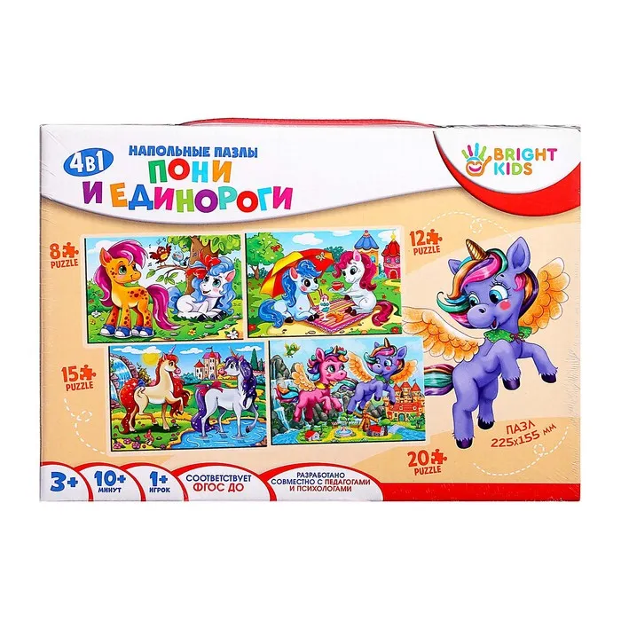 Пазл напольный 4 в 1 «Пони и единороги» — Характеристики