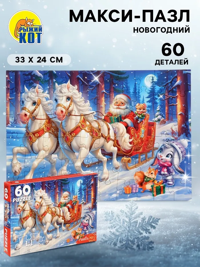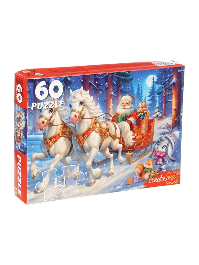 Пазл «Новогодняя упряжка», 60 деталей — Характеристики