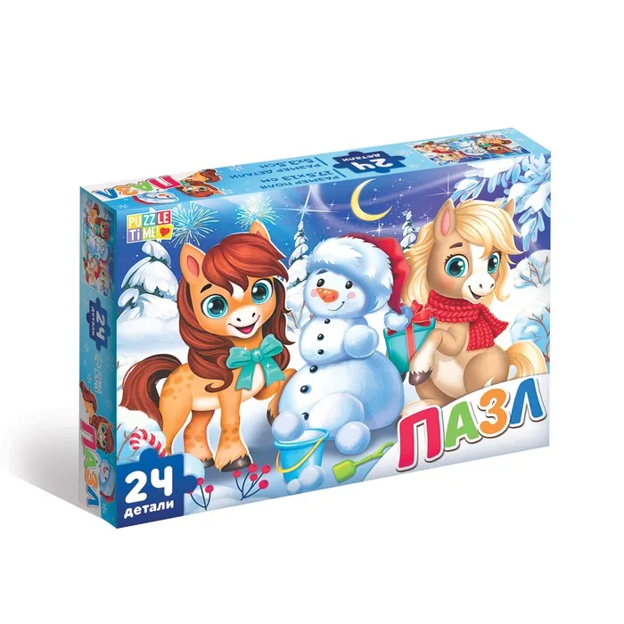 Пазл «Новогодние забавы лошадок», 24 детали, большая коробка — Характеристики