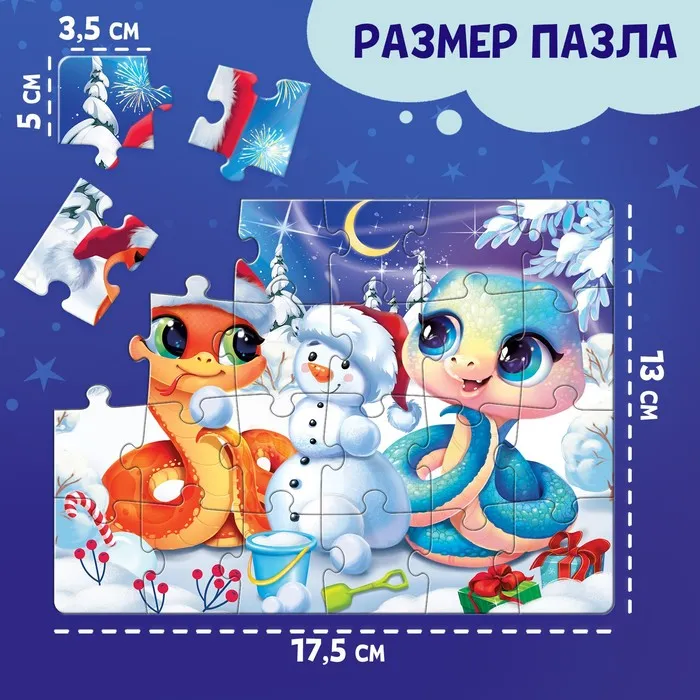 Пазл «Новогодние забавы змеек», большая коробка, 24 детали — Характеристики