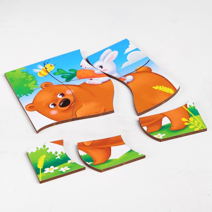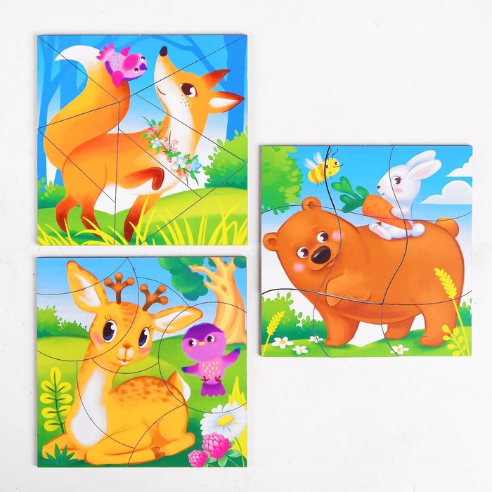 Пазл разрезной «Лесные животные», 3 картинки в раме — Характеристики