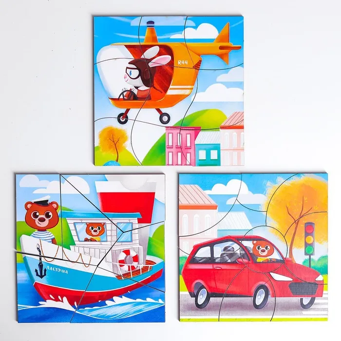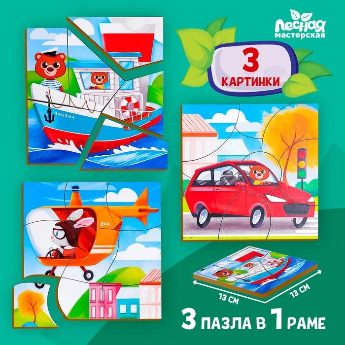 Пазл разрезной «Транспорт», 3 картинки в раме — Характеристики