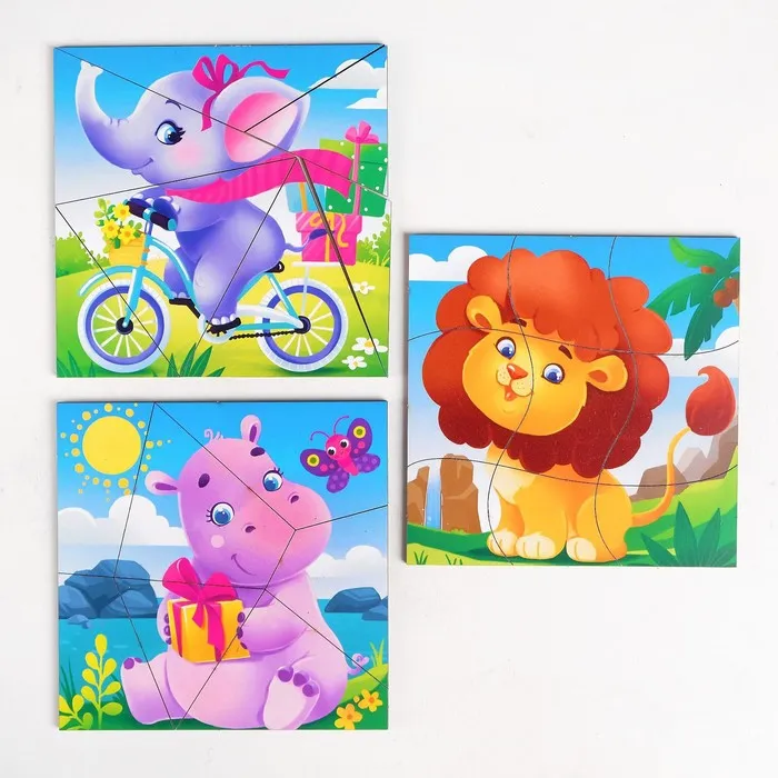 Пазл разрезной «Животные зоопарка», 3 картинки в раме, 23 детали — Характеристики
