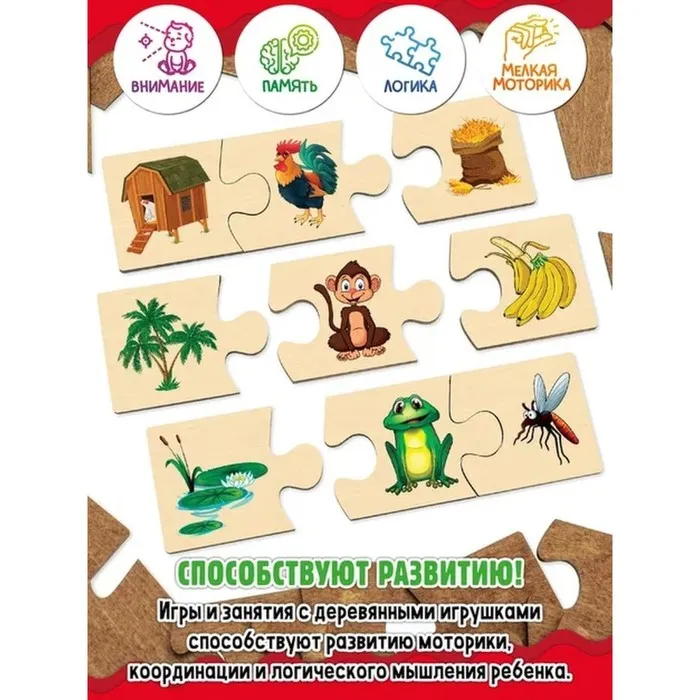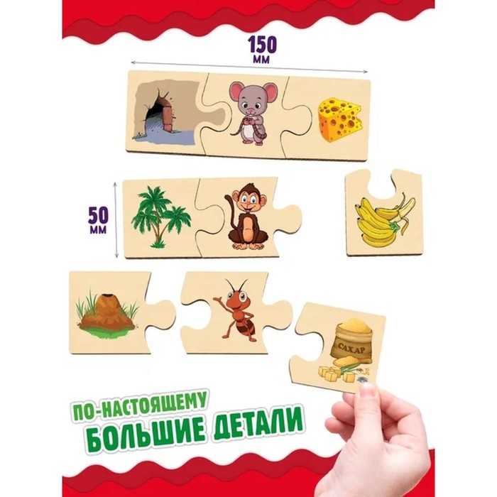 Пазл развивающий деревянный «Кто где живет? Кто что ест?» Играем в ассоциации, 36 больших элементов — Характеристики