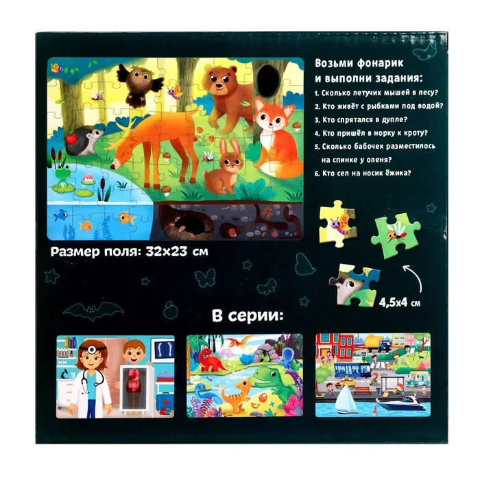 Пазл с фонариком «На лесной опушке», 63 детали — Характеристики