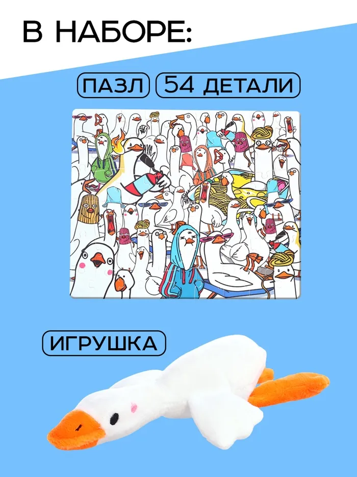 Пазл с игрушкой «Гуси обнимуси» набор 2в1, 54 детали — Характеристики