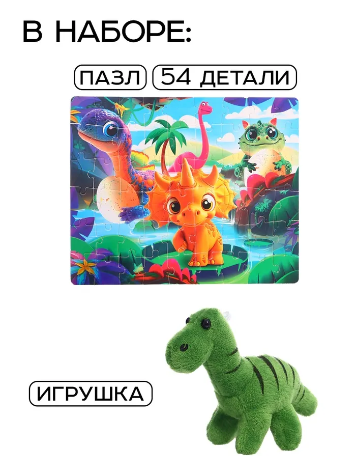 Пазл с игрушкой «Малыши динозавры» набор 2в1, 54 детали — Характеристики