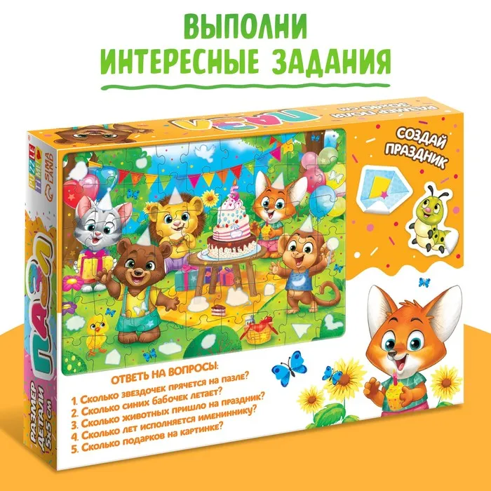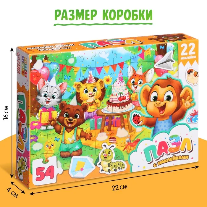 Пазл с наклейками «Весёлый день рождения», 22 наклейки, 54 детали — Характеристики