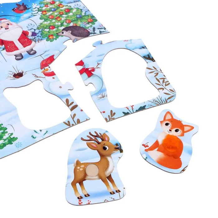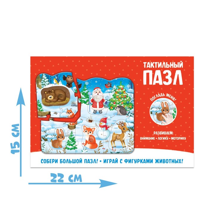 Пазлы с тактильными вставками — это 15 деталей, из которых ребёнок соберёт 5 разных пазлов и познакомится с животными зимнего леса. Игра поможет развить усидчивость, координацию и мелкую моторику рук, а также научит находить связь между частью и целым.