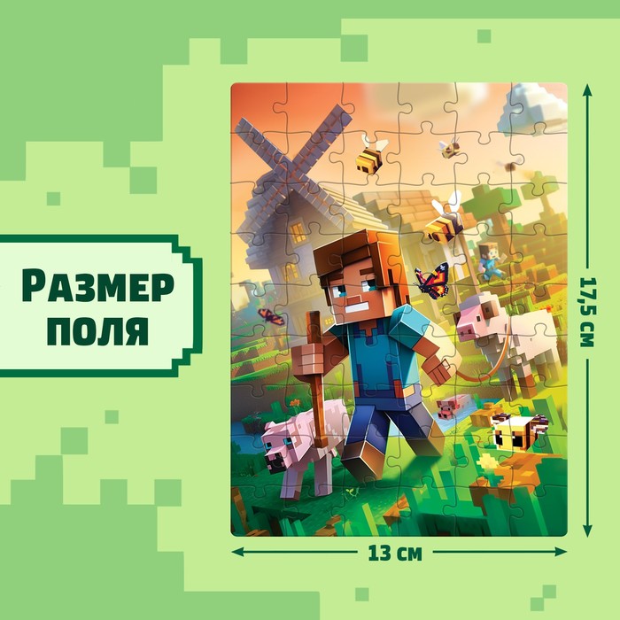 Ребёнок соберёт все 54 детали в одно целое и получит красочную картинку размером 17,5 × 13 см.